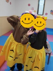 鬼のカチューシャや鬼のパンツなどの衣装を着て、