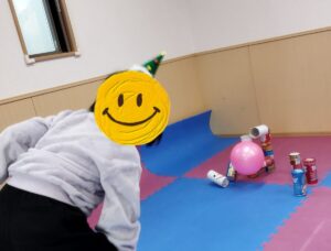 スノーマンボーリング⛄では、スタッフと「〇本倒せたね!」「残りのピンを倒すためにはどこに転がす?」などやりとりをしながら楽しく活動に参加することが出来ました。